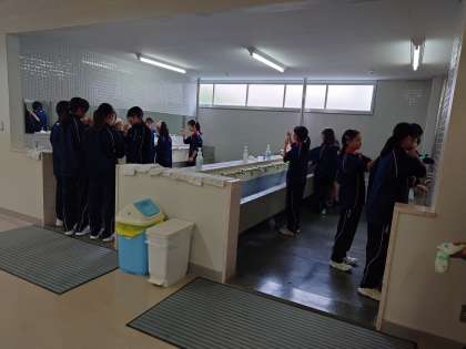 水筒の置く場所の最後の片付けを自主的にやってくれていました。ありがとう。