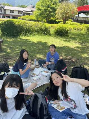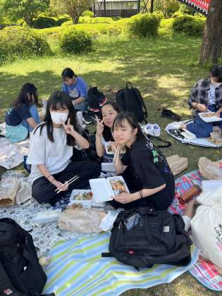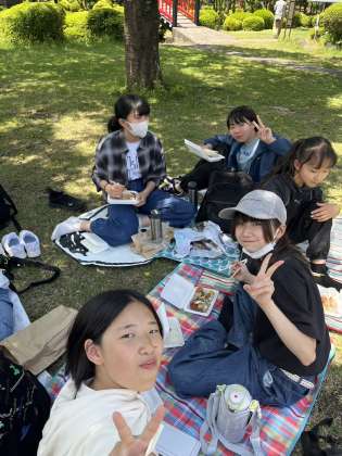 芝生の公園で、学園で作ってもらったお弁当と配った生茶を飲みました。