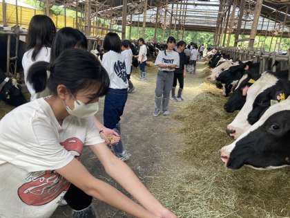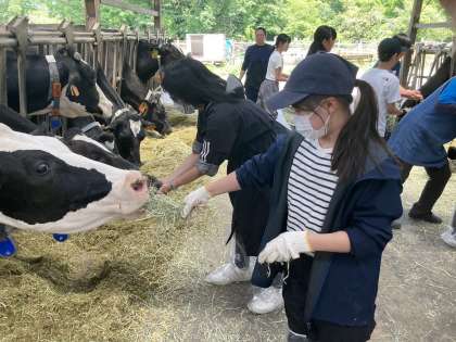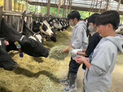酪農体験中。