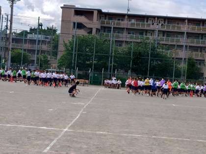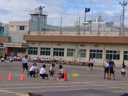 体育大会予行練習8 5月29日(水) 公開日 2024/05/29 更新日 2024/05/29 できごと 競技の予告は一年生とI組の全員リレー、23年生は入退場の練習、学年種目です。 1年生とI組の全員リレー準備です。 放送の合図で、入場です。 いいね(0)