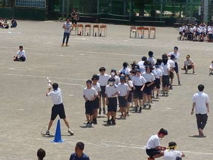 体育大会予行練習23 5月29日(水) 公開日 2024/05/31 更新日 2024/05/31 できごと 3年生は、毎年恒例大縄です。 せーの。 息を合わせて、ジャンプ!! 3回戦です。 いいね(0)