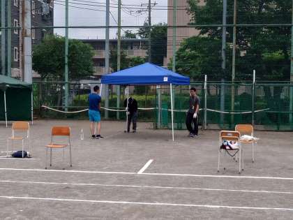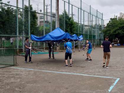 テントづくりにパパたちも大活躍。弦和会役員の皆様も、朝早くから準備ありがとうございます。