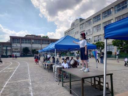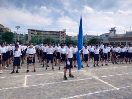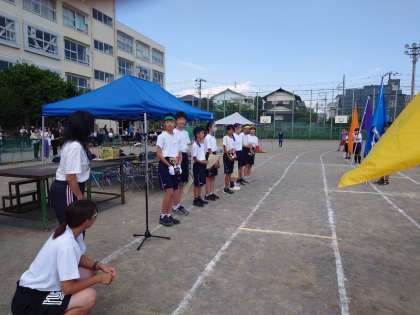 閉会式の締めくくり、校歌を歌いました。元気よく、声高らかに!!