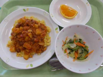 5月10日・11日の給食 公開日 2024/06/11 更新日 2024/06/11 給食 5月10日の献立 ・ご飯 ・イワシのかば焼き ・野菜の梅ドレッシング ・豚汁 5月11日の献立 ・チリビーンズライス ・グリーンサラダ ・国産オレンジ いいね(0)