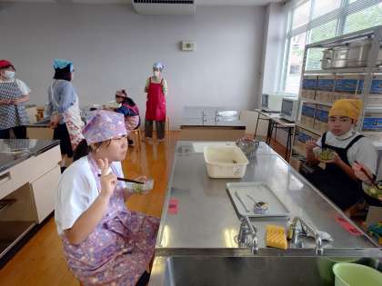 I組、家庭科の授業です。後半のグループは、準備中です。