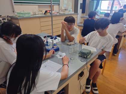 理科実験中。