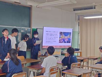3年生修学旅行での事後学習を1.2 年生に向けて、発表をしました。