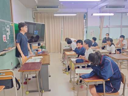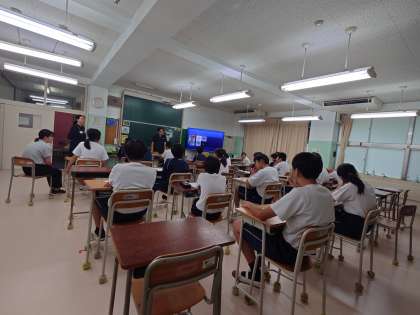 歯科校医の先生に、毎年I組と1年生を対象に歯科講話を行っていただいています。