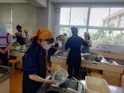 I組は家庭科で調理実習をしました。