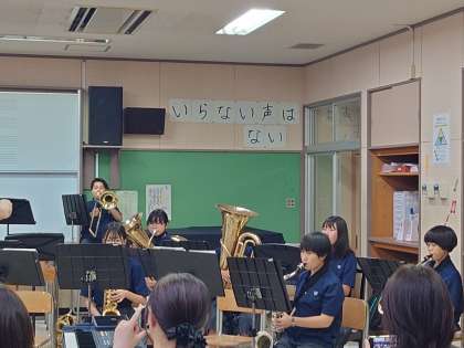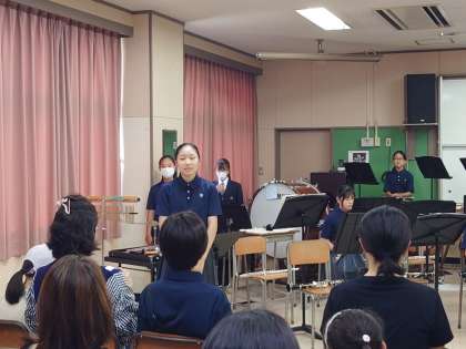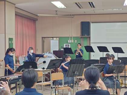 吹奏楽部新人演奏会2 7月6日(土) 公開日 2024/07/06 更新日 2024/07/06 できごと まずは、1年生だけの演奏です。 曲は、今年度の吹奏楽コンクールで演奏する 「風がきらめくとき」です。 さあ、どうぞ!! いいね(0)