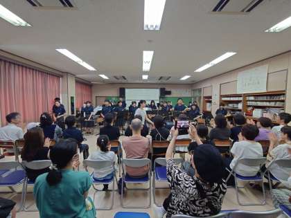 吹奏楽部全員での演奏は、さらに素晴らしい演奏になりました。顧問の中谷先生からは、コンクールまであと一ヶ月半とおっしゃられていました。