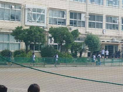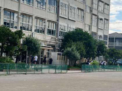 暑い中、元気に登校する弦中生。