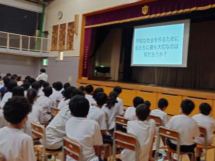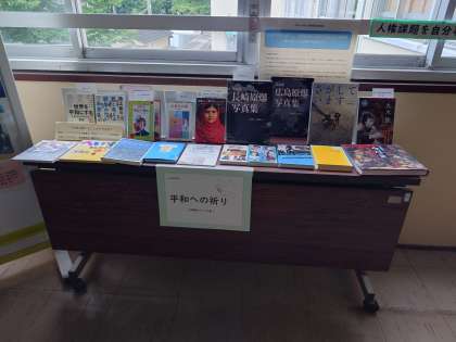 学校公開期間一日目3 7月11 日(木) 公開日 2024/07/12 更新日 2024/07/12 できごと 平和な社会を作るために何が大切か、周りの人たちと意見交換もしました。 二階の中央階段踊り場には、毎月テーマを変えて、人権平和に関する図書が紹介されます。今月は「平和への祈り」です。校長室前にもたくさん本をおいてあります。ぜひ手にとって読んでください。 1年生の保護者の皆様、学校公開で朝からご参観くださり、教室移動をお伝えしていませんでした。すみません。 いいね(0)
