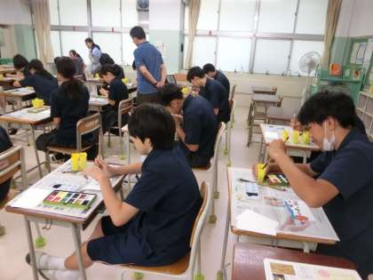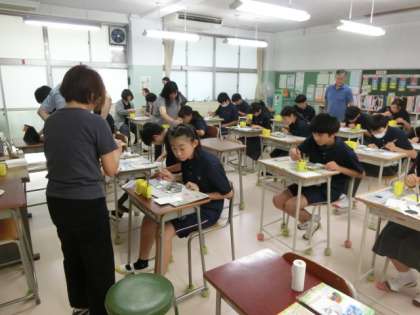 I組では、学校運営委員の小林さんが、今年も「絵手紙教室」を開催してくださいましいた。2・3年生は、小林さんを見かけると「小林先生」と笑顔でご挨拶。絵手紙教室、楽しみにしていました。