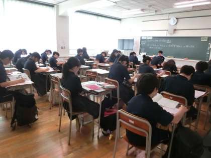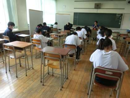 全教室の授業見学中。弦中生、姿勢がいいですね。