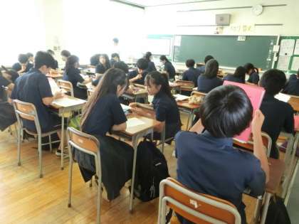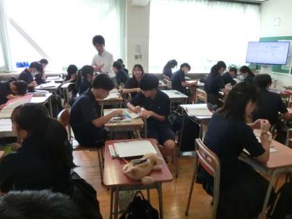 黒板を写したり、隣同士で相談したり、授業を楽しんでいます。