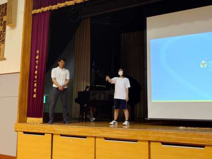 ドナルド・マクドナルドハウス出前授業9 7月18 日(木) 公開日 2024/07/20 更新日 2024/07/20 できごと ようこそ、先輩!感謝の気持を込めて、みんなで校歌を歌いました。 権田先輩も一緒に歌ってくれました。 校歌覚えているのですね!! いいね(0)
