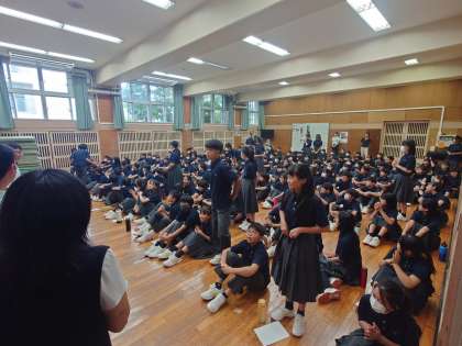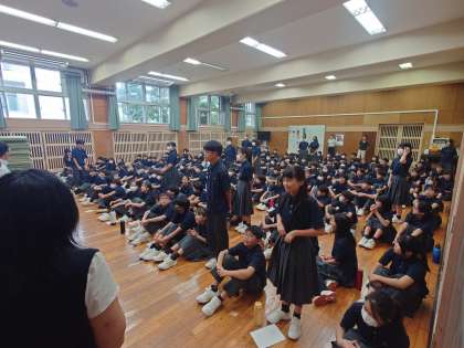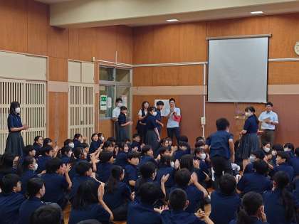 1年生の学年集会は、移動教室事後学習コンテストの表彰があり、参加させてもらいました。