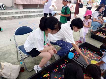 緑陰子ども会ボランティア1 7月20日(土) 公開日 2024/07/20 更新日 2024/07/20 できごと 毎年、松丘小学校で行なわれる緑陰子ども会のボランティアを弦巻中の生徒が行います。また、お客さんとしても、たくさんの弦中生が遊びに行きます。スーパーボールすくいのお手伝いをしています。 いいね(0)