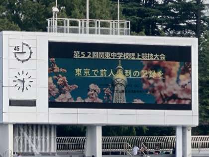 関東中学校陸上競技大会1 8月8日(木) 公開日 2024/08/08 更新日 2024/08/08 できごと 駒沢陸上競技場にいます。 今年の関東中学校陸上競技大会会場。 弦巻中学校からは、110mH東京都代表として選ばれた代表生徒が走ります。 東京で陸上競技部の憧れの駒沢競技場です。 頑張れ!! いいね(0)