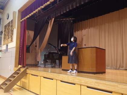 校長講話、そして校歌を、歌いました。