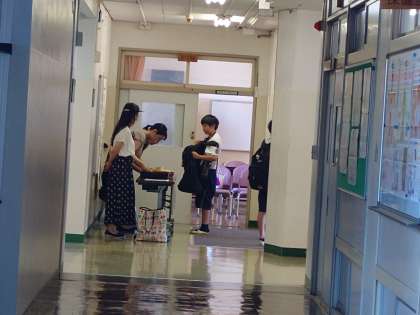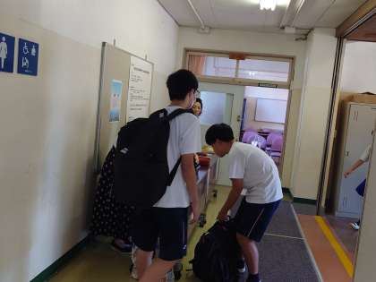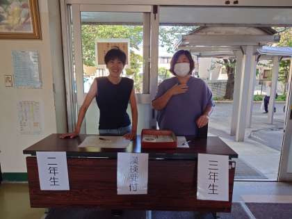 漢検受付日です。朝早くから昇降口でみんなをまっていてくださっています。