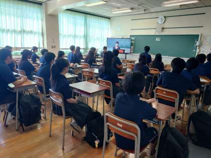 生徒会朝礼はリモートで行っています。すっかりこの形が定着しました。