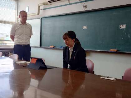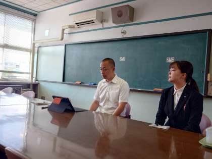 弦中生活1 9月9日(月) 公開日 2024/09/10 更新日 2024/09/10 できごと 今日から二週間、一年生に教育実習生が来ました。リモート朝礼でご挨拶をしてもらいました。 2週間よろしくお願いします。 いいね(0)
