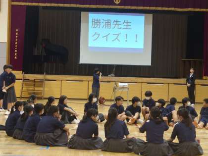 教育実習生の先生が最終日。1年生で、学年レクは、先生クイズで盛り上がりました。