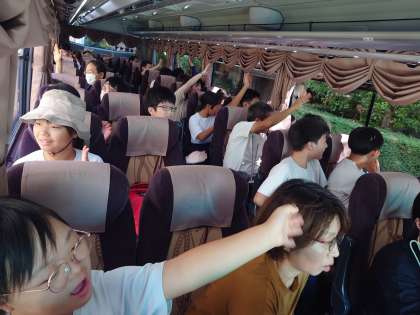バスの中では、お友達とおしゃべりしたり、マジカルバナナをやったり、それぞれ楽しんでいます。
