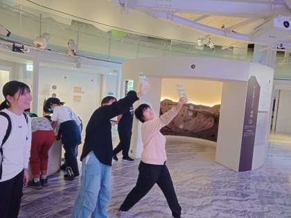I組河口湖連合移動教室二日目17 10月3日(木) 公開日 2024/10/03 更新日 2024/10/03 できごと 北館に移動して、スクリーンに映る富士山の映像をみんなで見ました。北館は、富士山の動植物について学べます。 いいね(0)