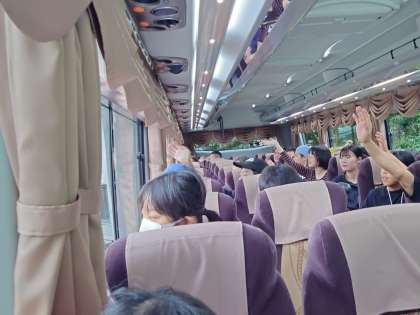 バスからさようなら。また来年来ます。ありがとうございます。