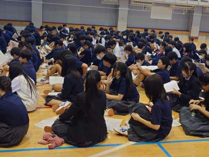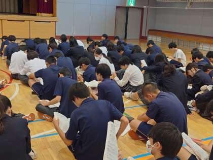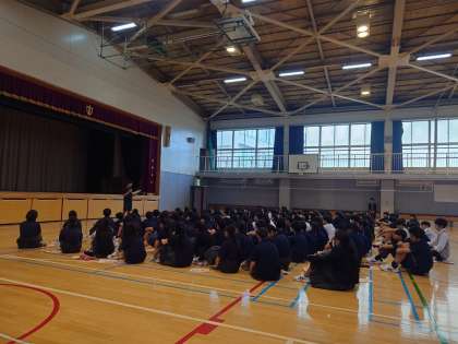 学年集会のあと、明日からの職場体験の事前指導です。心構えを清水先生から気合の入った話がありました。弦巻中学校の生徒として、爽やかな挨拶、返事、職場の方々に失礼にならない態度で、頑張ってきてください。