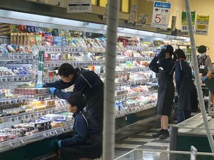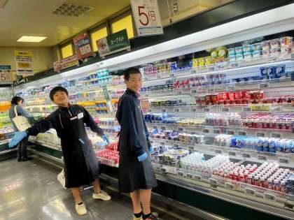 スーパーで商品を並べています。