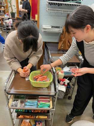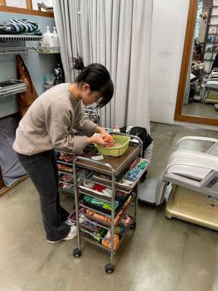 美容室でも体験しています。道具を丁寧に扱い準備しているのかな。