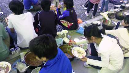 自分たちで作ったカレーをおいしそうに食べています。かくし味が利いていることでしょう。