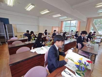 今年のお花は、主役のガーベラ、脇を固めるのが、リンドウです。