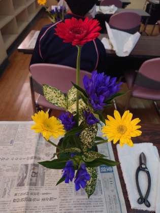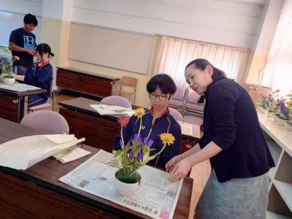 日本語「華道体験」10 10月10日(木)11日(金) 公開日 2024/10/15 更新日 2024/10/15 できごと 私も子どもたちと一緒に生けてみました。先生からご指導いただき、全然違うものに変身です。 いいね(0)