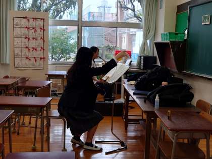 合唱コンクール学年リハーサル13 10月24日(木) 公開日 2024/10/25 更新日 2024/10/25 できごと 放課後吹奏楽部も練習を頑張ります。 2年生の展示作品も楽しいです。 いいね(0)