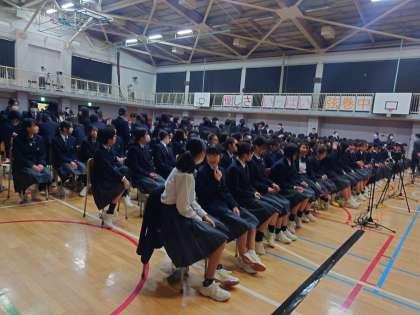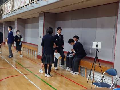 体育館に保護者、生徒がそろいました。いよいよです。