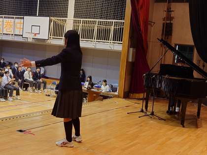 さあ、3年生です。3年生の学年合唱『大地讃頌』が始まりました。