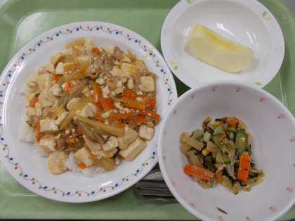 11月1日・11月5日の給食 公開日 2024/11/05 更新日 2024/11/05 給食 11月1日の献立 ・四川豆腐丼 ・大根とひじきのサラダ ・りんご りんごは「シナノスイート」という甘さがあり、固さもちょうどよくて食べやすい品種です。 11月5日の献立 ・みそ煮込みうどん ・サバのたつたあげ ・からしあえ いいね(0)