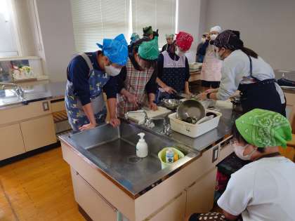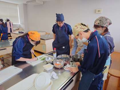 後半チームの豚汁作り始まりました。丁寧に野菜を切っています。