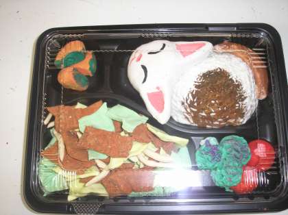 美術部は、紙粘土でお弁当づくり。ご飯やおかずを粘土でつくり、色をつけています。