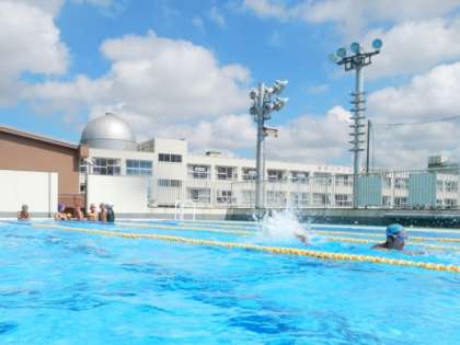 9月4日(火)、水泳の授業がありました。登校時は曇り空で「今日、寒いのかな〜」と生徒たちも心配していましたが、プールに行くと雲がはれ、太陽が元気いっぱい顔を出してくれました。久しぶりのプールに、生徒たちはとても喜んでいました。