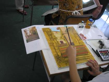 10月の合同発表会での展示に向けて、絵筆を動かしています。