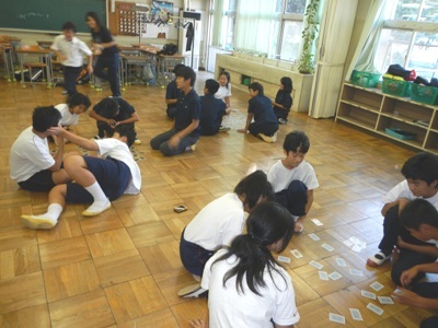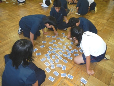 9月11日(火)、今日は学年毎にトランプをしました。七並べ・ババ抜き・神経衰弱などをみんなで楽しく行いました。移動教室の室内レクのような雰囲気でした。
