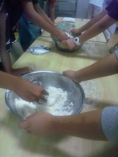 なかなか思うような固さになりません。水の量を調節しながら、手を動かしていました。