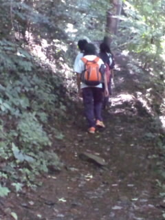 雨でぬれた坂道です。滑らないように慎重に登って行きます。