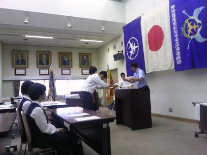 本日平成24年度世田谷区体育連盟夏季総合体育大会表彰式があり、本校男子が総合6位となり、表彰されました。水泳部男子の生徒が代表として表彰状をいだたきました。